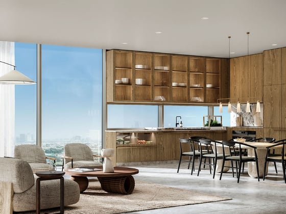 Each residence is meticulously crafted with biophilic design elements and features exceptional amenities, including cutting-edge kitchen appliances and expansive balconies that provide exquisite panoramic views of the Arabian Sea, The Palm Jumeirah, and Dubai’s illustrious skyline.