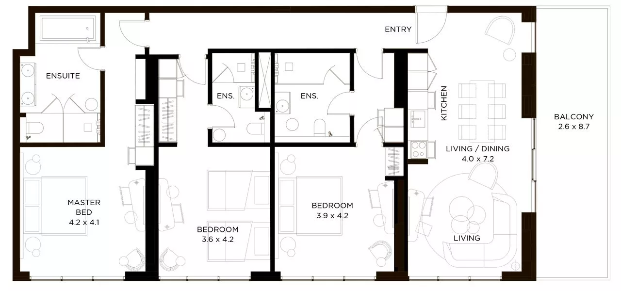 Each property in Mansio at Th8 is beautifully complemented with marble floor finishes, fully-fitted closets and cabinetry, as well as floor-to-ceiling windows. Not forgetting private balconies and terraces, which overlook the stunning Dubai Marina skyline, the Burj Al Arab and Ain Dubai. Select 2–3 bedroom properties also have an exclusive lock-off configuration for extra privacy.