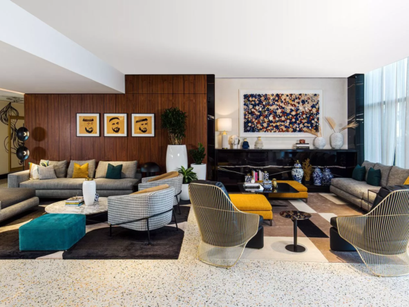 Nestled on the western crescent of the iconic Palm Jumeirah, Mansio at Th8 is an upscale collection of fully-furnished, serviced residences by IFA Hotels & Resorts inspired by chic Miami living. That being said, there are a total of 57 one–three branded apartments available for purchase, with living areas ranging from 845 sq. ft to 2,626 sq. ft.