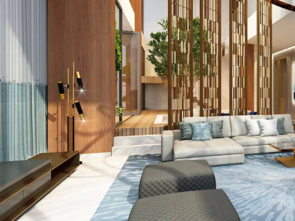 The area of properties available for purchase ranges from a generous 858 sq. ft to a colossal 19,543 sq. ft. Apart from loft units, all properties here come with a balcony, overlooking the Dubai Canal, while penthouse owners will also appreciate an office, a media room, a pool area and terraces, a jacuzzi, a private gym, as well as a sauna and a steam room, among other key features in each residence. Not forgetting that penthouse occupants will be able to enjoy private entertainment on the upper levels – a pre-function room and an open-plan sky lounge of 6,286 sq. ft.